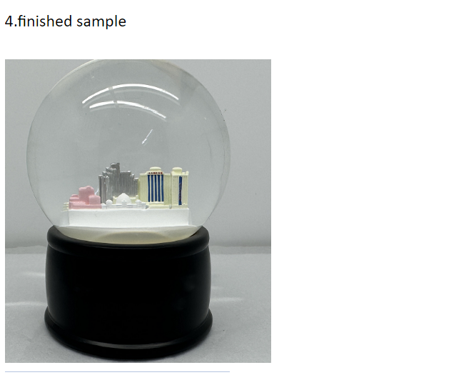 Sample Production and Optimization: On July 31st, the color number for coloring was communicated with the customer.On August 15th, the initial semi - finished sample was produced. On August 19th, adjustments were made according to the customer's requirements for color improvement, and the picture of the sample after the second improvement was confirmed by the customer on August 26th. On September 2nd, the finished snow globe pictures were sent to the customer for confirmation.